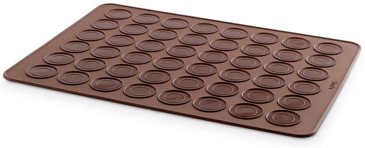 Lekue - Mata do makaroników Hiszpańska firma Lekue to wynalazca najwyższej jakości silikonu – Platinum – używanego do produkcji między innymi form i akcesoriów kuchennych. W ofercie Lekue znajdziemy wiele artykułów ułatwiających pracę w kuchni właśnie z tego materiału. Mata do pieczenia ciasteczek - makaronikówIdealnie okrągłe, nieziemsko pyszne ciasteczka - w domu na zawołanieMakaroniki - ciasteczka przyrządzane z białek jaj, cukru pudru i mielonych migdałów - na europejskich stołach są podawane od XIII w. Choć słyną z walorów smakowych i odżywczych, w Polsce zyskują popularność dopiero od niedawna. Podstawową barierą była ich wysoka cena. Dzięki macie Lekue od dziś każdy może piec makaroniki w domu za niewielkie pieniądze.Mata z 24 wyprofilowanymi miejscami na ciasteczka została wykonana z najlepszej postaci silikonu - tzw. silikonu platinum (używanego również do produkcji smoczków dla niemowląt). Dzięki nieprzywieralnej powłoce upieczone ciasteczka bardzo łatwo zdejmuje się z maty.Można myć w zmywarce. Kolor:brązowy Wymiary:30 x 40 cm [dł. x szer.] Materiał:100% platinum silikon