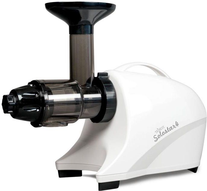 Solo Star 4 Dane techniczne Gęste soki / musy NIE / TAK (miękkie produkty) Wyciska sok z trawy Tak Rozmiar otworu wsadowego 38x38mm Prędkość obrotowa 47 RPM Moc 135W (5.4 HP) Waga 5,5 kg Wymiary (dł x szer x wys) 41 x 17 x 33 cm Gwarancja silnik / części 10 lat / 3 lata Wyciskarka do soków SOLO …
