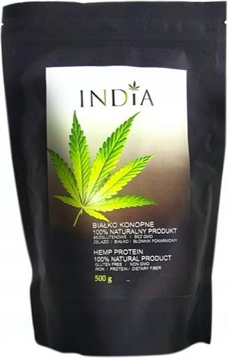 wysoka zawartość białka roślinnego wspiera budowanie masy mięśniowej doskonały dodatek do diety dla vegan zawiera cenne kwasy tłuszczowe omega 3 wzmacnia układ odpornościowy Komu polecamy India białko konopne 500g? Białko konopne w formie proszku składa się w 100% białka konopnego, które stanowi świetny dodatek do codzienne diety. Produkt ten polecamy wszystkim osobom aktywnym uprawiającym różnego rodzaju dyscypliny sportowe w celu osiągnięcia wymarzonej sylwetki i uzupełnienia białka roślinnego w diecie, które sprawdza się świetnie jako alternatywa dla białek pochodzenia zwierzęcego. Co osiągnę stosując India białko konopne 250g? Białko pochodzenia z konopi zaleca się stosować wszystkim osobom, które prowadzą zdrowy tryb życia i którym zależy na skutecznej regeneracji mięśni. Główną zaletą w/w produktu jest to że zawiera aż 20 aminokwasów w tym aż 9 aminokwasów (endogennych) które muszą być przyjmowane z zewnątrz w formie pożywienia lub suplementu diety. Każda porcja tej odżywki białkowej to potężna dawka argininy aminokwasu, który posiada właściwości poprawiające ukrwienie i odżywienie komórek mięśniowych co wpływa na lepszą i szybszą regenerację organizmu. Duża zawartość błonnika zmniejsza wchłanianie cholesterolu, dzięki czemu zmniejsza ryzyko powstania chorób układu krążenia i usprawnia kondycję jelit. Jak mogę stosować India białko konopne 500g? Stosuj 1-2 porcji dziennie. SKŁADNIKI: 100% BIAŁKO KONOPNE Masa netto: 500g