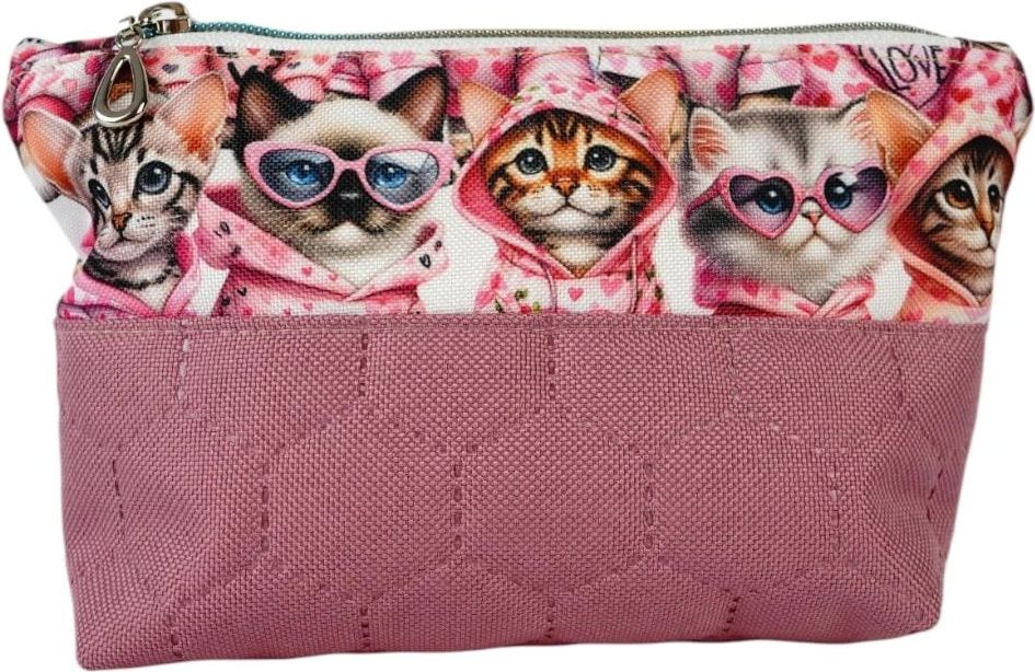 Kolorowa Kosmetyczka Dziecięca Brudny Róż i Koty w Bluzie Pszczyna