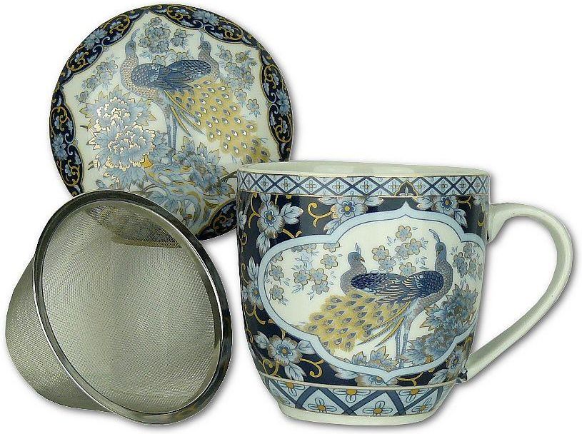 Zestaw kubek z zaparzaczem sitkiem orientalny paw na prezent (7966) Kubek do herbaty z metalowym zaparzaczem i przykrywką marki Marco Polo. Kubek o pojemności 400 ml (pojemność liczona po rant kubka). Kubek oraz pokrywka zostały wykonane z dobrej jakości porcelany Fine Porcelain. Uroczy, biały …