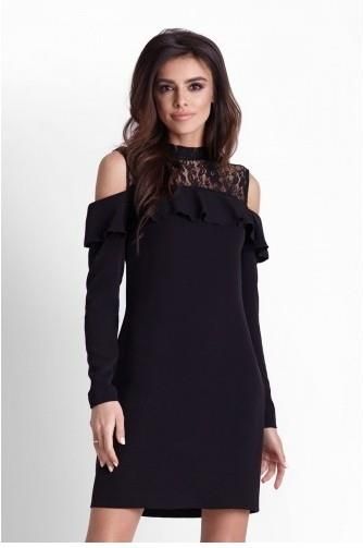 Elegancka sukienka o prostym luźnym fasonie. Góra sukienki z elastycznej koronki z niewysoką stójką. Na biuście falbana – optycznie powiększająca biust.Długi rękaw zmysłowo odkrywający ramiona.Na tyle nieduża łezka oraz zapięcie na guziczek.Idealna propozycja na imprezę okolicznościową, randkę, czy weseleSkład: 95 % poliester, 5 % elastanSukienka wyprodukowana w Polsce, co gwarantuje wysoką jakość oferowanego produktu.Wymiary odzieży mierzone na płasko WYMIARY: Rozmiar XS Szerokość w biuście 40 cm Szerokość w talii 39 cm Szerokość w biodrach 46 cm Długość całkowita 86 cm Rozmiar S Szerokość w biuście 42 cm Szerokość w talii 41 cm Szerokość w biodrach 48 cm Długość całkowita 88 cm Rozmiar M Szerokość w biuście 44 cm Szerokość w talii 43 cm Szerokość w biodrach 50 cm Długość całkowita 90 cm Rozmiar L Szerokość w biuście 46 cm Szerokość w talii 45 cm Szerokość w biodrach 52 cm Długość całkowita 92 cm