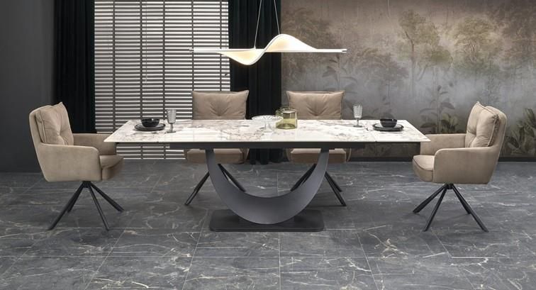 Stół Rozkładany do Salonu ze Spieku 160-240x92 Biały Marmur Czarny Fernando Stół Fernando to eleganckie i trwałe rozwiązanie do nowoczesnego wystroju wnętrza. Mebel posiada blat ze spieku, który charakteryzuje się odpornością na uszkodzenia mechaniczne, zarysowania, plamy, a także wysoką …