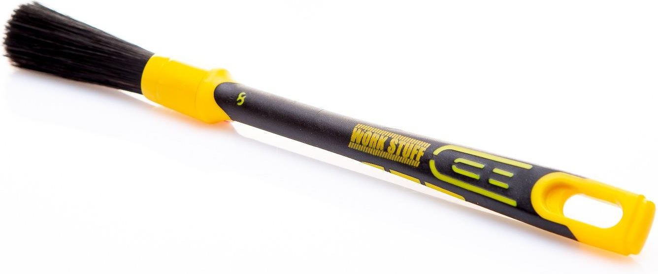 WORK STUFF Pędzel Detailingowy Rubber Black 16mm Pędzelek do czyszczenia z syntetycznym włosiem o większej sile działania. WORK STUFF Rubber Black rozmiar 16mm (oznaczany "8" na pędzelku) to pędzel detailingowy o syntetycznym włosiu, który doskonale sprawdza się w czyszczeniu różnego rodzaju trudno dostępnych miejsc. Duży rozmiar pędzla sprawia, że jest niezastąpiony podczas domywania wnęk, szczelin, uszczelek, lusterek, felg, grilla, plastików zewnętrznych, emblematów i innych zakamarków. Sprawdzi się również podczas pielęgnacji wnętrza samochodu. Posiada ergonomiczną budowę i jest bardzo trwały. Pędzel WORK STUFF RUBBER posiada wygodny i odporny na chemię, gumowy trzonek. Mocne Strony Syntetyczne włosie o zwiększonej sile działania. Wszechstronny - nadaje się wewnątrz i na zewnąrz auta. Doskonały do doczyszczania felg, plastików, wnęk i innych. Ergonomiczny kształt i odporność na chemię. Odporny na chemię, gumowy trzonek.