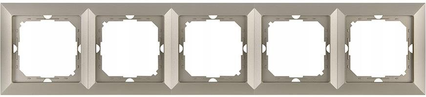 Ramka pięciokrotna. Kilka słów o serii Perła firmy Abex. Klasyczny design, rozbudowana gama kolorystyczna. Uniwersalność ramki pozwala na montaż produktów w pionie i poziomie. Dzięki swojej prostocie wkomponuje się w każde wnętrze. Seria modułowa posiadająca system ramkowy, symetryczny (1-, 2-, 3-, 4-, 5-krotny) umożliwiający zamontowanie wyrobu w opcji poziomej i pionowej. Uniwersalny kształt oferowany w szerokiej palecie barw począwszy od koloru białego, beżowego, przez opcje kolorów metalizowanych: srebrny, satynowy, antracyt, czarny matowy, umożliwia dodatkowo tworzenie indywidualnych kompozycji kolorystycznych. Nowoczesny mechanizm szybkozłącza (przewody mocowane są przez wciśnięcie ich bezpośrednio do korpusu) daje nam pewny i bezpieczny montaż i demontaż przewodów. Wewnętrzna konstrukcja zacisków gwarantuje pewność połączenia przewodów od 0,75 mm² do 2,5 mm². Silna i solidna blacha montażowa oraz wysokiej jakości samopowrotne pazurki umożliwiają stabilny i pewny montaż w puszce. Montaż ramek do korpusu jest doskonale rozwiązany przy pomocy specjalnej nakładki sprężynującej, która w łatwy sposób umożliwia dokonanie montażu.