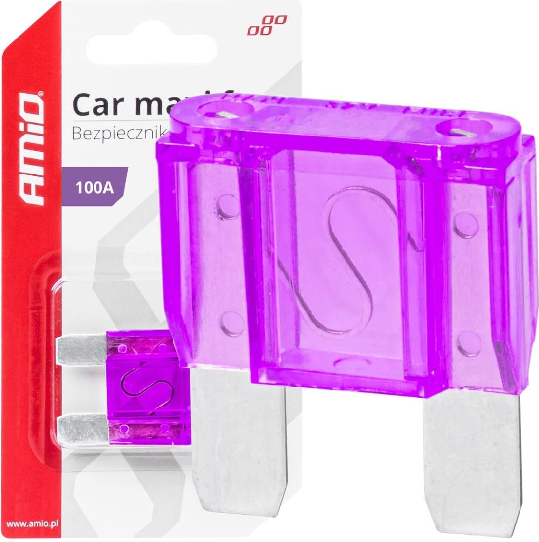Bezpieczniki MAXI pełnią rolę ochronną dla układów elektrycznych, zapobiegając przeciążeniom. Wybór konkretnego bezpiecznika zależy od mocy danego obwodu. Charakterystyka: Typ: bezpiecznik płytkowy Maxi Prąd znamionowy: 100A Pakowanie: 1 sztuka w blistrze