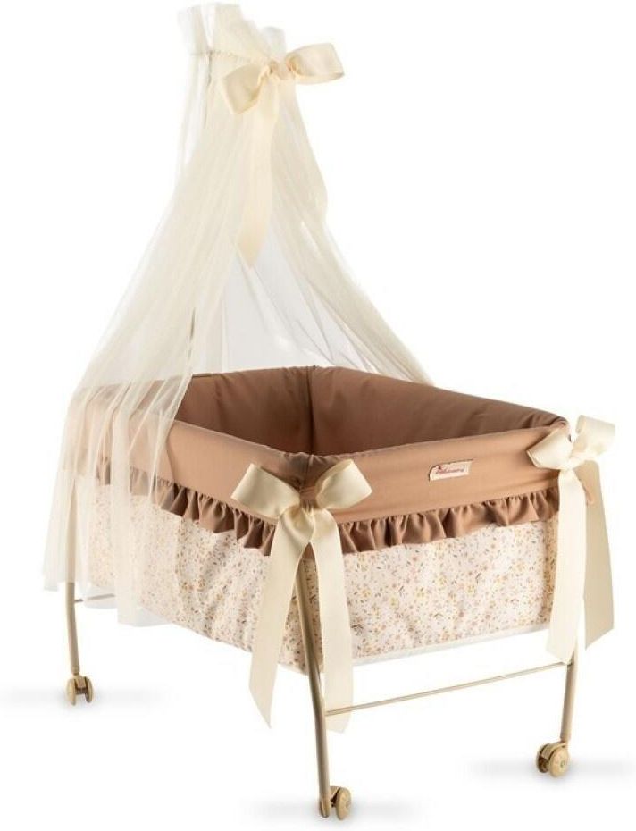Łóżeczko Teresa z baldachimem dla lalki do 46 cm Asi 3712204 Chcesz uatrakcyjnić dziewczynce zabawę lalkami a przy okazji zadbać o stylowy wystrój pokoju dziecięcego? Łóżeczko z tiulowym baldachimem ecru 3712204 z kolekcji ASI Teresa zachwyca oryginalnym designem, wygodą użytkowania i funkcjonalnością. Jest idealne dla lalek o wysokości od 30 do 46 cm. Polecamy je maluchom od 3. roku życia. Jak wygląda konstrukcja hiszpańskiego łóżeczka dla lalki? Łóżeczko dla lalki na kółkach posiada składany, lekki, metalowy, lakierowany na beżowo stelaż. Gondola wykonana została z wysokiej jakości bawełny w małe kwiatuszki. Falbankowe wykończenie, zwiewny tiul podwieszany na wąskiej metalowej konstrukcji oraz lśniące satynowe kokardy nadają całości luksusowego wyglądu. W komplecie usztywniony materacyk oraz kolorowa dwustronna kołderka z poduszeczką. Wymiary: wysokość baldachimu 79 cm, wysokość łóżeczka 38 cm, szerokość 35 cm, długość 51 cm. Waga: 2,075 kg Mebelek jest zapakowany w formie rozłożonej w solidne firmowe pudełko kartonowe ze zdjęciem. Złożenie na podstawie instrukcji obrazkowej jest szybkie i proste, przy użyciu 3 dołączonych śrub. OSTRZEŻENIE! Nieodpowiednie dla dziecka poniżej 3 roku życia. Małe części. Zgodne europejskimi normami bezpieczeństwa CE. Produkt oryginalny, jego kopiowanie jest zabronione. Zachowaj oryginalne opakowanie jako dowód pochodzenia produktu. UWAGA. Przed oddaniem zabawki dziecku należy usunąć i wyrzucić wszystkie zabezpieczenia. Kolory, wzory, zawartość produktu mogą się różnić.