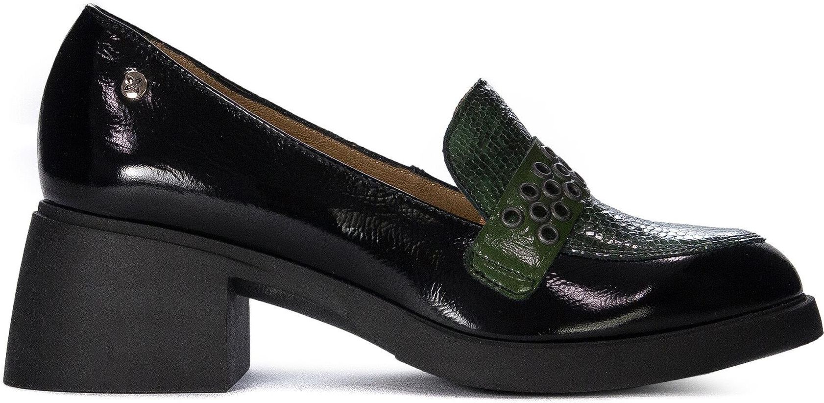 Najnowszy model półbutów damskich z kolekcji jesienno-zimowej marki Maciejka to wyjątkowa propozycja dla modnych kobiet, które cenią sobie komfort. Cholewka wykonana jest z lakierowanej skóry naturalnej w odcieniach czerni i zieleni. Buty są wsuwane i mają okrągły nosek. Wnętrze oraz wkładka zostały wykończone miękką skórą naturalną, co zapewnia wygodę noszenia. Obcas o wysokości 5 cm dodaje subtelnej elegancji. Ten model świetnie pasuje do codziennych, casualowych stylizacji. Wyprodukowano w Polsce, jakość: I.