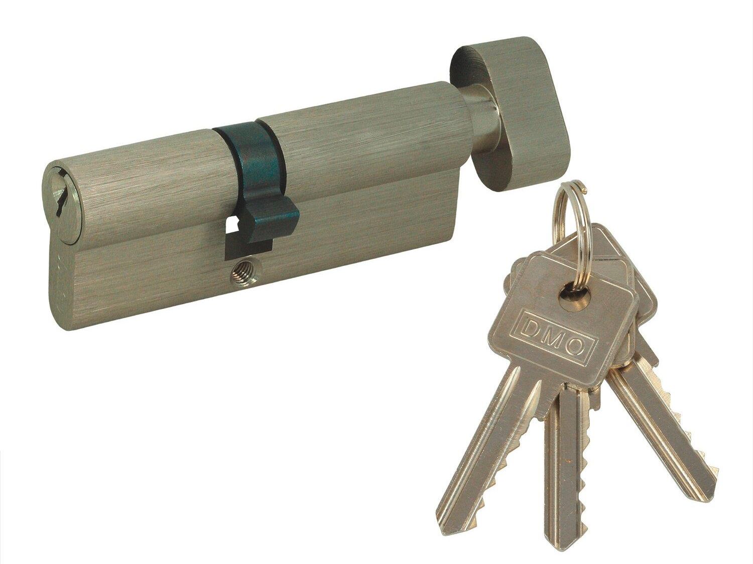 Wkładka bębenkowa DMO 41G/56 - nikiel, marki Domino. Jest to popularna wkładka bębenkowa z gałką, którą można montować w szerokiej gamie zamków wpuszczanych. Otwierana z jednej strony kluczem, przeznaczona jest do drzwi zewnętrznych. Wkładka posiada mosiężny cylinder, dzięki czemu nie rdzewieje, nie zacina się, jest trwała i wygodna w użytkowaniu. Kolor niklu sprawia, że dobrze komponuje się z większością okuć. Wkładkę cechuje wysoka trwałość mechanizmu - ponad 25 000 cykli. Do wkładki dołączono 3 klucze nacinane. Specyfikacja techniczna Klasa bezpieczeństwa: 3 długość wkładki: 41/56 mm Waga: 289 g Wysokość: 9,7 cm Szerokość: 1,7 cm Głębokość / Grubość: 3,5 cm