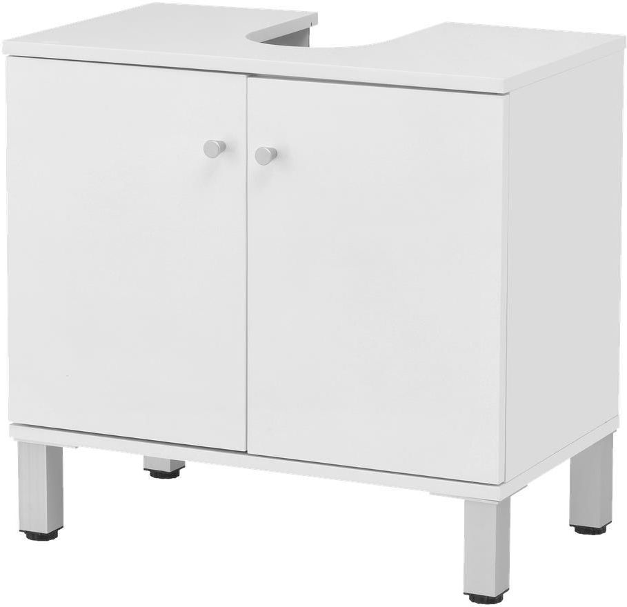 Szafka pod umywalkę z dwiema półkami i regulowanymi nóżkami. Model wolnostojący, który nie wymaga kotwiczenia w ścianie.