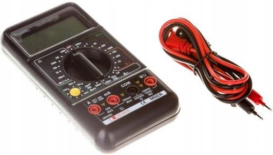 Multimetr wykorzystuje się przy bieżącej konserwacji urządzeń elektrycznych oraz przy wykonywaniu nowych instalacji elektrycznych. Dzięki zastosowaniu multimetru będziecie mieć całkowitą pewność przy pracy z urządzeniami elektrycznymi. Parametry produktu wybór zakresu: ręcznie napięcie AC: 2 V–750 V natężenie AC: 2 mA–20 A napięcie DC: 200 mV–1 000 V natężenie DC: 200 µA–10 A rezystancja elektryczna: 200 Ohm–20 MOhm ciągłość obwodów: tak test diód: tak test tranzystorów: tak bezkontaktowa detekcja napięcia AC: nie kontaktowa detekcja napięcia AC: nie test baterii: nie pomiar temperatury: nie pamięć maksymalnej wartości: nie pamięć zmierzonej wartości: nie automatyczne wyłączenie: nie wyświetlacz: 3,5 digit podświetlenie wyświetlacza: nie wskaźnik rozładowania baterii: tak multimetr cęgowy: nie wymiary: 32 × 85 × 165 mm zasilanie: 1× 9 V (w zestawie) w zestawie: baterie, instrukcja, groty pomiarowe opakowanie: 1 szt., blister