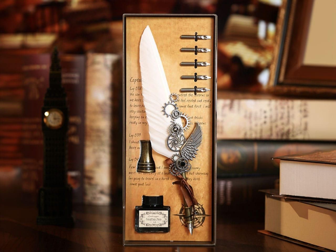Hanipol Zestaw Piśmienniczy - Pióro Białe Z Kałamrzem, Atramentem I 5 Stalówkami Pszów
