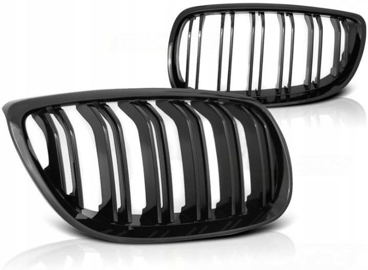 GRILL PRZEDNI DO SAMOCHODU BMW 3E92 E93 wersja nadwozia: COUPE, CABRIO auta z roczników 2007-2010 cena za komplet 2 szt grill jest fabrycznie nowy, nigdy nie zakładany i oryginalnie zapakowany bardzo dobrej jakości zamiennik oryginalnego grilla nowoczesny wygląd, niesamowity efekt na Twoim samochodzie grill jest dokładnie dopasowany do typu pojazdu, a jego montaż odbywa się w oryginalnych punktach mocowania CZARNY POŁYSK - PODWÓJNE ŻEBRA