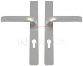 Klamko-klamka na długim szyldzie SATURN Do wyboru trzy rozstawy L=72,85,92 (wymiar od środka trzpienia do środka bębenka wkładki) Wykonane z aluminium Posiadają w komplecie śruby M5 wraz z trzpieniem Trzpień kwadratowy 8mm Wspomaganie sprężynowe Dostępne kolory: