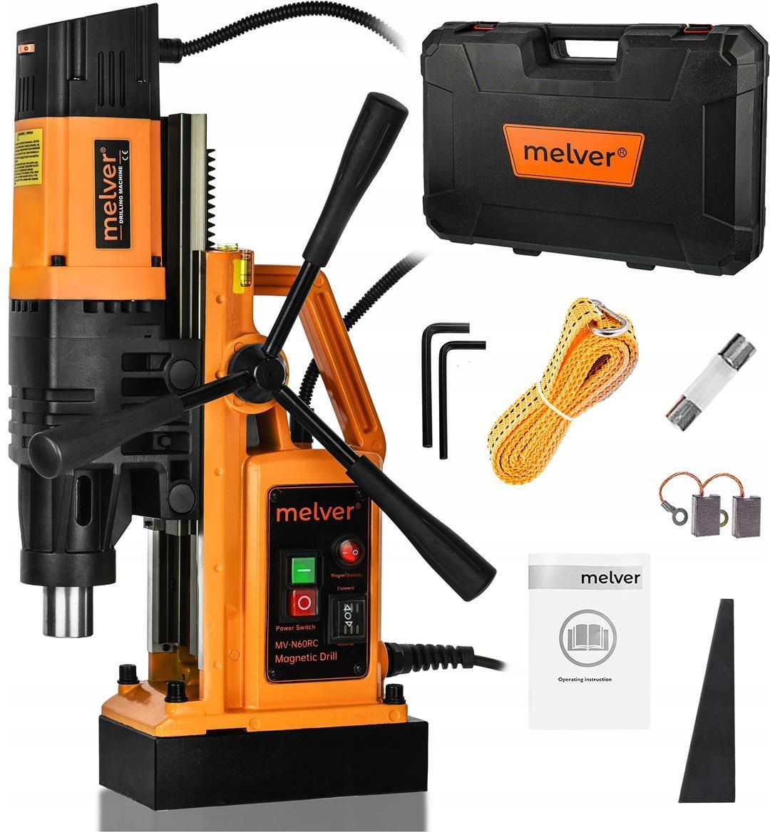 2 Biegowa Wiertarka magnetyczna MELVER z wrzecionem na stożku Morse'a MK/MT 3 ✅Max. średnica wiercenia (wiertłem rurowym) 60 mm ✅Max. średnica wiercenia (wiertło pełne/walcowe) 28 mm ✅Max. średnica nacinania gwintu M20 SZCZEGÓLNE CECHY: ✅2 biegowa przekładnia ✅Stożek Morse'a MK3 / MT3 ✅Wysokowydajny silnik rewersyjny o mocy 2080 W ✅Płynna regulacja prędkości obrotowej ✅Możliwość gwintowania ✅Solidna konstrukcja 2 biegowa wiertarka magnetyczna MELVER, wyposażona w stożek Morse'a MK/MT 3 i mocny silnik o mocy 2080 W, doskonale sprawdza się w wymagających pracach. Dzięki funkcji rewersyjnej i wysokiej mocy jest niezawodna zarówno przy wierceniu, jak i gwintowaniu. Idealnie nadaje się do wiercenia spiralnego, gwintowania, rozwiercania i pogłębiania, łącząc jakość wykonania z przystępną ceną, co czyni ją wyjątkowo wszechstronnym i wydajnym narzędziem dla profesjonalistów. DANE TECHNICZNE: Zasilanie: 230 V Moc silnika: 2080 Watt Łagodny rozruch (soft start): TAK Max. średnica wiercenia (wiertłem rurowym): 60 mm Max. średnica wiercenia (wiertło pełne/walcowe): 28 mm Max. średnica nacinania gwintu: M20 Max. prędkość obrotowa [obr. / min.]: 0 - 300 [bieg I] 0 - 550 [bieg II] Funkcja gwintowania: TAK Rozmiar wrzeciona: Stożek Morse'a MK3 / MT3 Liczba biegów: 2 Skok roboczy: 345 mm Długość przewodu zasilającego: 2,3 m Max. przyciąganie magnetyczne: 19500 N Pojemność zbiornika chłodzącego: 650 ml Waga: 20 kg Gwarancja: 2 lata Wymiary: L1 [długość całkowita]: 280 mm L2 [długość elektromagnesu]: 205 mm L3 [odległość magnesu od środka wrzeciona]: 45 mm L4 [szerokość elektromagnesu]: 105 mm L5 [długość uchwytów]: 185 mm h1 [max. wysokość]: 625 mmm h2 [min. wyskość]: 425 mm h3 [max. wysokość wrzeciona do podstawy]: 205 mm h4 [ wysokość elektromagnesu]: 50 mm ZASTOSOWANIE GŁÓWNE: wiercenie otworów we wszystkich rodzajach stali max. do 60 mm gwintowanie maszynowe prace i montaże w terenie przy konstrukcjach stalowych, mostowych, stoczniowych, itp. montaż metalowych instalacji w terenie prace serwisowe i naprawcze urządzeń dźwigowych, ciężkiego sprzętu np. koparek itp. DODATKOWE INFORMACJE: Mobilność i możliwość wykonywania otworów o dużych rozmiarach 2 biegowa przekładnia pozwala na zmiany między wysokimi prędkościami obrotowymi do dokładnej obróbki a wysokim momentem obrotowym do ciężkiej obróbki Posiada stożek Morse'a MK3 / MT3 i wysokowydajny silnik o mocy 2080 W, umożliwiając wiercenie średnic do 60 mm z możliwością ciągłego chłodzenia wewnętrznego lub zewnętrznego Idealna maszyna do wiercenia wiertłami pełnymi (krętymi) na stożku Morse'a do max średnicy 23 mm Solidna konstrukcja elektromagnesów w połączeniu z dużą mocą 19500N pozwala na bezpieczną pracę urządzenia zarówno w pionie jak i poziomie Łagodny rozruch (system soft start) oraz możliwość płynnego regulowania prędkości obrotowej od 0-300 obr/min na biegu 1 pozwala na wygodne gwintowanie do max. 28mm Przeznaczona dla przemysłu - dzięki tej przenośnej (20 kg) wiertarce magnesowej, będziesz dobrze wyposażony do profesjonalnego użytku na budowie, w warsztacie jak i na linii montażowej. Solidna konstrukcja elektromagnesów w połączeniu z dużą mocą 19500N pozwala na bezpieczną pracę urządzenia zarówno w pionie jak i poziomie. Do 100% siły mocowania magnesu potrzeba co najmniej 20 mm stali. Magnes posiada płaską powierzchnię w związku z czym należy go stosować tylko na płaskim, gładkim materiale, z którym styka się całą powierzchnią magnesu. Łagodny rozruch oraz możliwość płynnego regulowania prędkości obrotowej idealnie sprawdzi się podczas gwintowania. 2 biegowa przekładnia biegów pozwala na optymalną pracę podczas wiercenia otworów o różnych wielkościach we wszystkich rodzajach stali max. do 60 mm. ⚠️Na nasze urządzenia dajemy 2 letni okres gwarancyjny - zarówno dla firm jak i osób prywatnych, oferujemy również wszystkie części zamienne oraz serwis pogwarancyjny, który znajduje się w Bytomiu (województwo Śląskie).⚠️ ZAKRES DOSTAWY: 1x Wiertarka magnetyczna MELVER MV-N60RC 1x Klin do wybijania stożka 5x Klucz imbusowy 3x Uchwyt posuwu 1x Pas bezpieczeństwa 2x Szczotki do silnika 1x Bezpiecznik 1x Instrukcja 1x Walizka transportowa GRATIS!!! Niewidzialne rękawiczki w kremie 200 ml INFORMACJA: WALIZKA NIE JEST PRZEDMIOTEM SPRZEDAŻY W ZWIĄZKU Z TYM NIE PODLEGA REKLAMACJI.