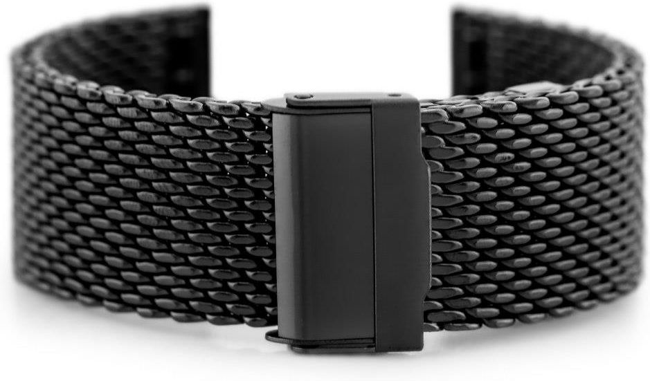 Bransoleta Pacific 12 - siatka HQ - czarna 22mm WYMIARY szerokość przy mocowaniu: 22mm szerokość bransolety: 22mm długość całkowita po rozłożeniu: 200 mm maksymalny obwód: ok. 16,2 cm (do obwodu należy doliczyć rozmiary koperty docelowego zegarka) OPIS Stalowa bransoletka do zegarka typu 'siatka' …