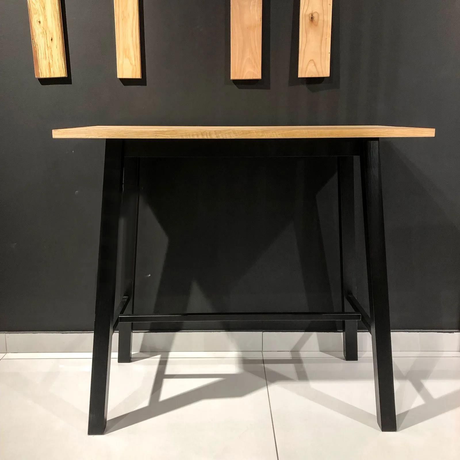 Stół D2-CHA Wysoki stół o wyjątkowym designie to idealne połączenie elegancji i funkcjonalności. Jego naturalny drewniany blat dodaje ciepła i naturalnego uroku, tworząc przytulną atmosferę w każdym pomieszczeniu. Czarne metalowe nogi nie tylko nadają mu nowoczesny charakter, ale także zapewniają stabilność i trwałość. Ten stylowy stół doskonale sprawdzi się jako centralny punkt w kuchni, jadalni czy salonie. Zestawiając design i solidność, ten stół stanie się nie tylko praktycznym elementem wyposażenia, ale również estetycznym akcentem, który podkreśli charakter Twojego wnętrza. Blat stołu ma kilka defektów widocznych na zdjęciach nie wpływających na funkcjonalność stołu. Wymiary: długość: 117 cm szerokość: 59 cm wysokość.: 104 cm