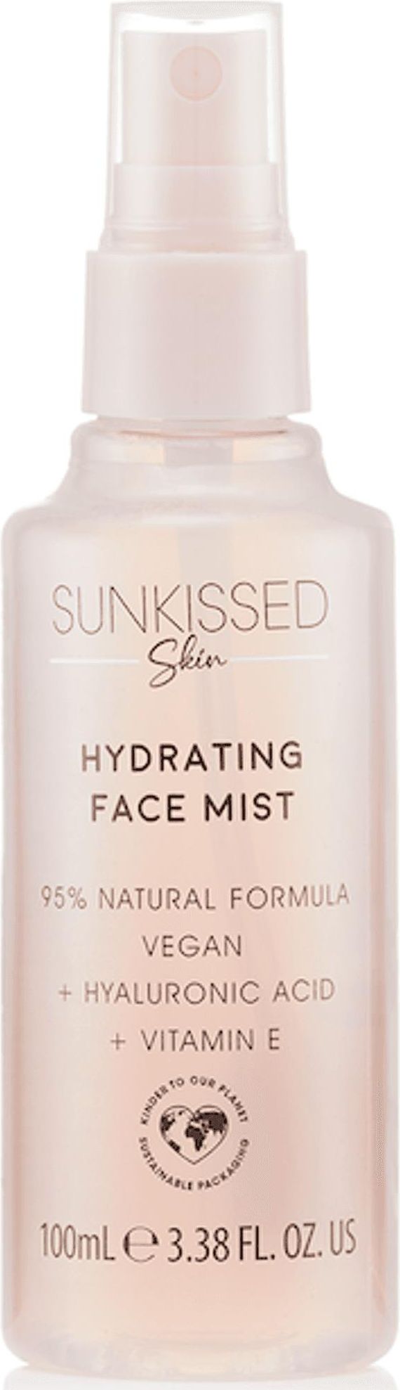 Sunkissed Hydrating Face Mist Mgiełka Do TwarzyNawilżająca mgiełka do twarzy Sunkissed Skin zapewnia intensywne nawilżenie dzięki aktywnym składnikom kwasowi hialuronowemu i witaminie E. Nawilża również skórę za pomocą liści aloesu. Skóra jest odświeżona i promienna. Ta przyjazna dla wegan formuła składa się w 95% z naturalnych składników. Jest przyjazny nie tylko dla zwierząt, ale także dla planety, dzięki ekologicznemu opakowaniu – butelce 30% PCR. Intensywne nawilżenie Szybkoschnący Zawiera kwas hialuronowy, liść aloesu i witaminę E 95% składników pochodzenia naturalnego Opakowania ekologicznePojemność: 100ml