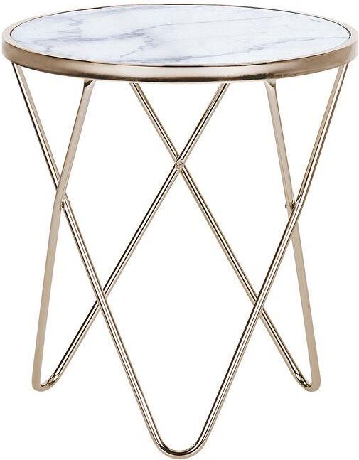 Beliani Stolik Pomocniczy Efekt Marmuru Biało-Złoty Meridian Ii Puck