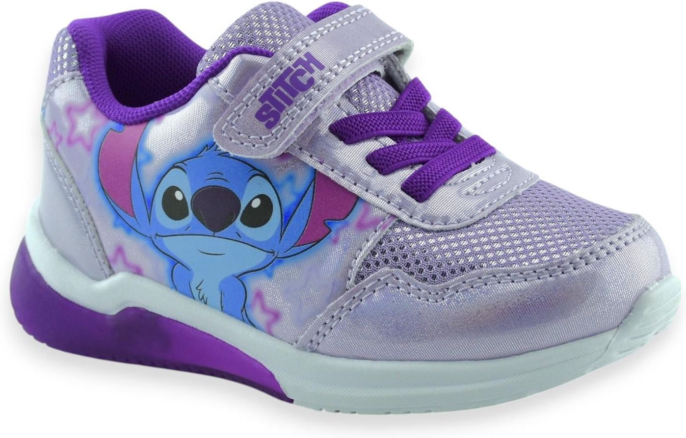 Dziewczęce buty sportowe LED z bohaterem Disneya – Stitch w fioletowym kolorze. Lekkie i wygodne, z efektowną świecącą podeszwą, idealne na cieplejsze, przejściowe dni. Świetnie sprawdzą się podczas spacerów, zabaw na placu zabaw i codziennych przygód.