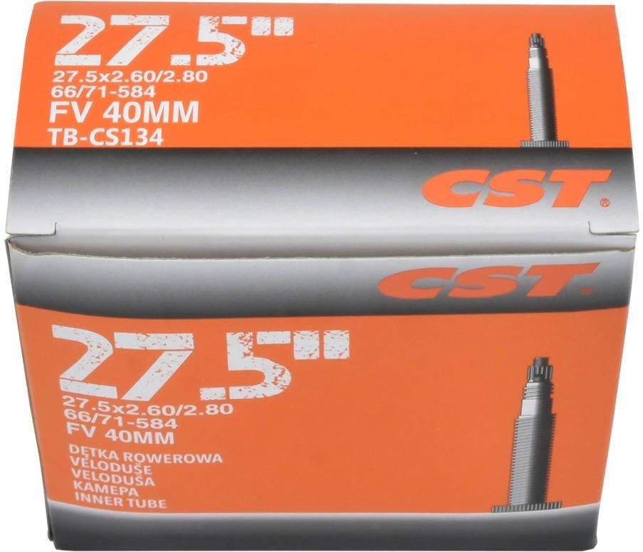 Firma Cheng Shin Tire, założona w 1967 roku na Tajwanie, rozpoczęła swoją działalność od produkcji opon rowerowych. Od samego początku priorytetem firmy była produkcja opon na najwyższym poziomie. Obecnie firma CST to czołówka branży oponiarskiej a także największy producent opon rowerowych na świecie. Opony CST dostępne są w ponad 150 krajach, w tym w Polsce od 2003 roku. Model: TB-CS134 Rozmiar: 27,5x2,60/2,80 ETRTO: 66/71-584 Wentyl: FV - Presta - Francuski Długość wentyla: 40mm Dętka pasuje do opon w rozmiarze: 27,5x2,60/2,80