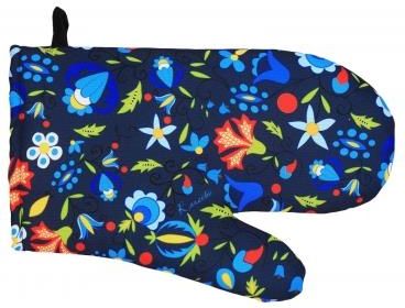 Rękawica kuchenna kaszubska, granatowa Niezbędna w każdej kuchni. Intensywny, folkowy wzór haftu kaszubskiego - szkoły żukowskiej uprzyjemni prace kuchenne. Projekt inspirowany tradycyjnymi ludowymi haftami kaszubskimi. Rękawica wykonana z wysokogatunkowej tkaniny poliestrowej o gramaturze 160 g. …