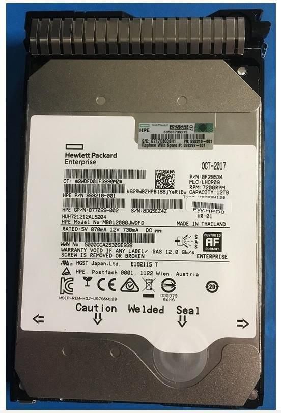 Hewlett Packard Enterprise DRV HDD 12TB 7.2K LFF SAS SC HE DS OEM Part Number: 881779-B21
