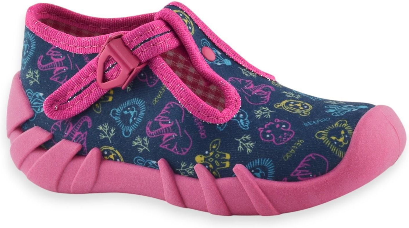 Kapcie Befado 110N492 Speedy do żłobka dla dziewczynki do przedszkola r.22 Kapcie dla dziewczynki w granatowym kolorze, ozdobione egzotycznymi zwierzątkami, które rozweselają i pobudzają wyobraźnię. Zapewniają wygodę i komfort małym stopom. Idealne do żłobka, przedszkola oraz jako obuwie do użytku …