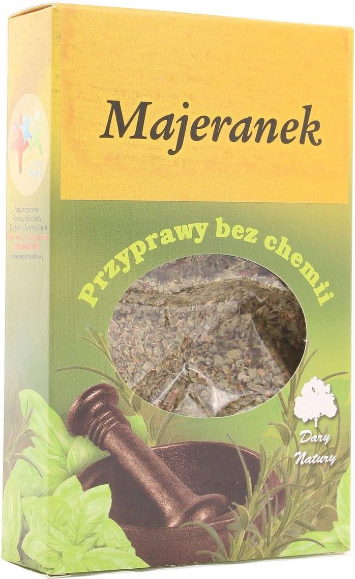Majeranek Dary Natury 15g Majeranek Dary Natury to jedno z najbardziej cenionych ziół w europejskiej kuchni. Pochodzący z południowo-wschodniej części basenu Morza Śródziemnego oraz południowej Azji, majeranek zdobył popularność na całym świecie dzięki swojemu wyjątkowemu aromatowi i smakowi. Doskonale nadaje się do wielu potraw, od dań ciężkostrawnych po zupy i sałatki. Wybór odpowiedniego zioła, takiego jak majeranek, może znacząco wpłynąć na walory smakowe i aromatyczne przygotowywanych dań. Właściwości Majeranek Dary Natury wyróżnia się doskonałą jakością i naturalnym pochodzeniem. Jako zioło z rodziny jasnowatych, charakteryzuje się intensywnym aromatem, idealnie komponującym się z różnorodnymi potrawami. Jego wyjątkowa moc sprawia, że jest szczególnie polecany do dań ciężkostrawnych, takich jak tłuste mięsa (np. wieprzowina, baranina, jagnięcina), a także do gęstych zup i potraw z warzyw strączkowych oraz kapusty. Dzięki swojej wszechstronności, ten aromatyczny składnik może być wykorzystywany zarówno w kuchniach domowych, jak i w profesjonalnych restauracjach. Zastosowanie Aromatyczne zioło majeranek doskonale sprawdzi się w wielu tradycyjnych potrawach. Poniżej znajduje się lista dań, w których warto wykorzystać majeranek: tłuste mięsa, takie jak wieprzowina czy baranina, zupy gęste, zwłaszcza te z dodatkiem warzyw strączkowych, potrawy z kapusty, które zyskują na smaku dzięki tej przyprawie, dania jednogarnkowe, w których warto wzbogacić smak, sałatki, gdzie zioło może dodać świeżości, potrawy z makaronem, które zyskują na intensywności aromatycznej, potrawy duszone i pieczone, które smakują lepiej z dodatkiem tego składnika. Skład Skład majeranku Dary Natury jest niezwykle prosty i przejrzysty: 100% majeranek, bez dodatków i konserwantów. To istotna informacja dla osób poszukujących naturalnych produktów lub tych, którzy borykają się z alergiami pokarmowymi. Wybierając zioło bez chemii, można mieć pewność, że każda szczypta tego dodatku przyczyni się do zdrowego i smacznego posiłku, a także wzbogaci codzienną dietę o cenne składniki odżywcze. Dodatkowo, majeranek posiada właściwości zdrowotne, wspomagając trawienie i działając antybakteryjnie. Zalety Majeranek Dary Natury dostępny jest w opakowaniu o wadze 15 g, co czyni go idealnym wyborem zarówno dla osób, które dopiero zaczynają przygodę z gotowaniem, jak i dla doświadczonych kucharzy. Dzięki niewielkiej wadze opakowania, można go łatwo przechowywać w każdym domu. Dodatkowo, niewielkie opakowanie pozwala na łatwe wypróbowanie zioła, zanim zdecydujesz się na zakup większej ilości. Istotne zalety to: naturalny skład: 100% zioło bez dodatków, bezglutenowy: idealne dla osób z nietolerancją glutenu, wysoka jakość: produkt od renomowanego producenta Dary Natury, wszechstronność: doskonale komponuje się z różnorodnymi potrawami, wygodne opakowanie: 15 g idealne na początek lub dla sporadycznych użytkowników, aromatyczny smak: intensywny aromat, który wzbogaca tradycyjne dania, pochodzenie: z Egiptu, gdzie zioło uprawiane jest w odpowiednich warunkach klimatycznych. Majeranek Dary Natury, z naturalnym składem i intensywnym aromatem, stanowi doskonały dodatek do wielu potraw, oferując zdrową alternatywę dla syntetycznych składników. Jego wszechstronność sprawia, że jest niezastąpionym składnikiem w przygotowywaniu wielu tradycyjnych dań.