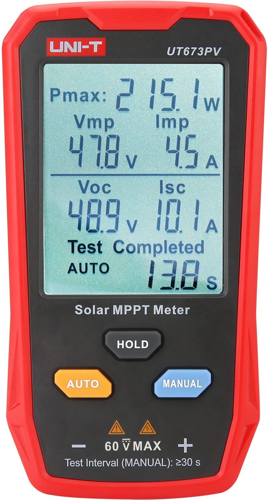 Miernik do paneli Fotowoltaicznych Uni-T UT673PV Profesjonalne narzędzie Dla instalatorów PV Instrukcja obsługi w języku polskim do pobrania pod opisem! Opis produktu Miernik Uni-T UT673PV to zaawansowane urządzenie stworzone z myślą o profesjonalistach zajmujących się instalacją, serwisem i kontrolą paneli fotowoltaicznych (PV). Dzięki precyzyjnym pomiarom napięcia, prądu i mocy, jest idealnym narzędziem dla instalatorów, serwisantów oraz producentów systemów fotowoltaicznych. Wyposażony w duży, czytelny wyświetlacz LCD (52x66 mm), prezentuje wszystkie wyniki pomiarowe jednocześnie, co znacznie ułatwia monitorowanie i analizę danych. Urządzenie wyróżnia się kompaktowymi wymiarami (143 x 74 x 25 mm) oraz niską wagą (250 g), co zapewnia wygodę użytkowania nawet podczas pracy w terenie. Intuicyjna obsługa i przewody pomiarowe z końcówkami MC4 umożliwiają szybkie i bezpieczne podłączenie do paneli PV, zwiększając efektywność pracy. Miernik UT673PV jest zasilany bezpośrednio z mierzonego panelu fotowoltaicznego, co eliminuje potrzebę stosowania baterii, a liczne zabezpieczenia (przed odwrotną polaryzacją, wysokim napięciem, nadprądem, przegrzaniem) gwarantują bezpieczeństwo i niezawodność. Kluczowe cechy Precyzyjne pomiary: Mierzy napięcie (do 1000 V DC), prąd (do 35 A) oraz moc maksymalną (5–800 W) paneli PV z wysoką dokładnością. Duży wyświetlacz LCD: Czytelny ekran 52x66 mm pokazuje wszystkie parametry jednocześnie. Złącza MC4: Szybkie i bezpieczne połączenie z panelami fotowoltaicznymi. Tryb MPPT: Obsługuje ręczne i automatyczne testy punktu maksymalnej mocy (MPPT). Funkcja Data Hold: Zatrzymanie wyników na ekranie dla łatwego odczytu. Zasilanie z panelu PV: Brak konieczności użycia baterii, idealne do pracy w terenie. Zabezpieczenia: Ochrona przed odwrotną polaryzacją, wysokim napięciem, nadprądem, przegrzaniem oraz zbyt wysokim napięciem zasilania. Kompaktowy i lekki: Waga 250 g, wymiary 143 x 74 x 25 mm – łatwy do przenoszenia. Kategoria ochronności: CAT 0 60 V, idealny do bezpiecznych pomiarów w systemach PV. Dane techniczne Pomiar mocy maksymalnej (Pmax): 5–800 W, dokładność ±(1,0% + 10). Pomiar prądu (Imp): 0–35 A, rozdzielczość 0,01 A. Pomiar napięcia (Vmp): 0–1000 V DC, rozdzielczość 0,1 V. Wyświetlacz: LCD, 52 x 66 mm. Zasilanie: Z panelu fotowoltaicznego (brak baterii). Waga: 250 g. Wymiary: 143 x 74 x 25 mm. Kategoria ochronności: CAT 0 60 V. Zastosowanie Instalacje fotowoltaiczne: Szybka weryfikacja parametrów paneli PV. Serwis i konserwacja: Diagnostyka usterek w systemach solarnych. Produkcja paneli PV: Testy jakości i wydajności modułów fotowoltaicznych. Zawartość zestawu Miernik parametrów paneli fotowoltaicznych Uni-T UT673PV. Komplet przewodów pomiarowych z końcówkami MC4. Instrukcja obsługi w języku polskim. Opakowanie fabryczne. Dlaczego warto wybrać Uni-T UT673PV? Profesjonalna jakość: Renomowana marka Uni-T gwarantuje niezawodność i precyzję. Wygoda użytkowania: Kompaktowy, lekki i intuicyjny w obsłudze. Bezpieczeństwo: Wielopoziomowe zabezpieczenia chronią użytkownika i urządzenie. Wszechstronność: Idealny dla profesjonalistów i amatorów w branży fotowoltaicznej. Kup teraz i zyskaj niezawodne narzędzie do pracy z panelami fotowoltaicznymi! Produkt dostępny z szybką wysyłką i darmową dostawą z Allegro Smart! Sprawdź inne produkty Uni-T w naszym sklepie!