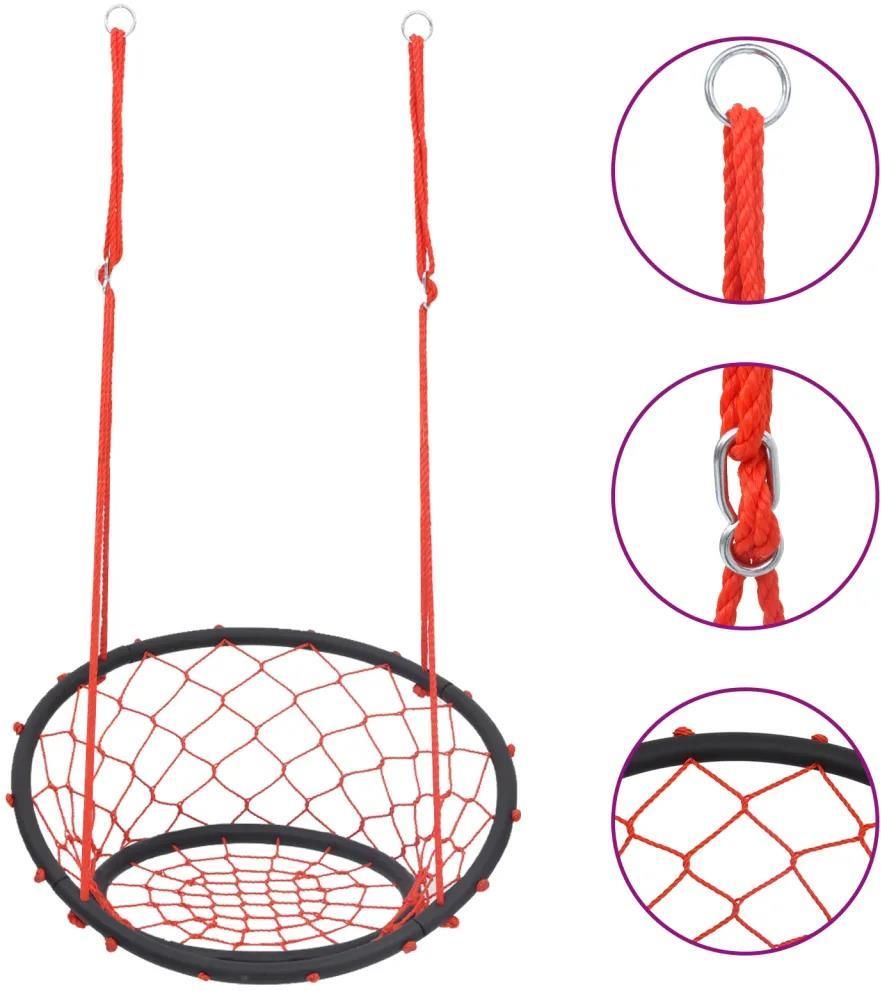 Wyobraź sobie, jak radosne będą Twoje dzieci, bawiąc się na tej plecionej huśtawce na swoim podwórku! Możesz zawiesić ją na gałęzi drzewa lub ramie huśtawki. Ta huśtawka do powieszenia na drzewie zawiera stalową ramę i odporną na zużycie plecionkę z liny, dzięki czemu jest mocna i zapewnia znaczny udźwig. Możesz wyregulować wysokość oparcia huśtawki, aby pasowało ono idealnie. Możesz też ustawić wysokość całej huśtawki, aby nogi sięgały do ziemi lub nie - zgodnie z Twoimi preferencjami. Siedzisko z plecionki zapewnia zapewnia lepsze podparcie i stabilność, nie musisz więc spinać linek, bojąc się o spadnięcie. Dzięki temu możesz zrelaksować się wygodnie i odpocząć lub się pohuśtać. Każda z regulowanych linek do podwieszenia jest mocno przymocowana do siedziska, a cztery punkty mocowania zapewniają równy naciąg, aby utrzymać równowagę i zapewnić bezpieczeństwo na huśtawce. Kolor: czerwono-czarny Materiał: PE, stal Wymiary: 90 x 180 cm (śr. x wys.) Średnica siedziska huśtawki: 60 cm Regulowana długość liny Wymagany montaż: tak OSTRZEŻENIE: Tylko do użytku na zewnątrz OSTRZEŻENIE: Maksymalna waga użytkownika: 100 kg OSTRZEŻENIE: Nieodpowiednie dla dzieci poniżej 36 miesięcy. OSTRZEŻENIE: Wyłącznie do użytku domowego.