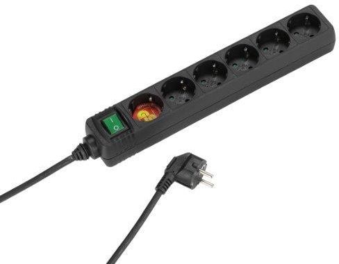 Wtyczka z zestykiem ochronnym na 3 x gniazdo Schuko z podświetlanym włącznikiem/wyłącznikiem; grubość przewodu doprowadzającego 1,5 mm² Gniazda wtykowe obracane o 45° do korzystania z wielu wtyczek kątowych; stabilna ochrona nietłukąca, wysokiej jakości obudowa z tworzywa sztucznego; wtyczka Schuko zagięta pod kątem 90° w celu najmniejszego odstępu od ściany Zabezpieczenie przed dziećmi – styki przewodzące prąd gniazd Schuko są wyposażone w specjalny bezpiecznik, który uwalnia otwory dopiero po pewnym ciśnieniu Zakres dostawy: Vivanco EBLS6 S listwa zasilająca z 6 gniazdami z włącznikiem i zabezpieczeniem przed dziećmi, czarna