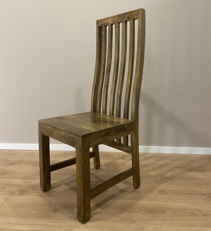 Szerokość 45cm / Głębokość 45cm / Wysokość 115cm / Kod produktu: 99-00111MH/ Krzesło drewniane z pionowymi poprzeczkami na oparciu Cechy mebla: * siedzisko o wymiarach 45x41,5 * siedzisko na wysokości 45 cm * mebel w całości wykonany z litego drewna * pionowo żebrowane oparcie Eleganckie, proste w formie krzesło z wysokim efektownym oparciem wykonane z litej grubej deski drewna mangowca. Krzesło zostało wykonane z litych desek drewna mango, pokrytych bejcą w odcieniu toffi i zabezpieczone satynowym bezbarwnym lakierem. Na oparcie krzesła składają się pionowe żebrowane deski tworzące wysokie i wygodne oparcie. Krzesło posiada doskonale wyprofilowaną część lędźwiową oparcia dla maksymalnego komfortu siedzenia. Idealne do jadalni czy salonu. Efektownie wygląda przy dużym masywnym drewnianym stole. Materiał: 100% drewno mango Kolor: toffi Wykończenie: bejca toffi, lakier satyna Co wyróżnia nasze meble na tle konkurencji: grubość drewna około 2-3 cm konstrukcja z litego drewna całość mebla wykonana jest w 100 % z drewna (korpus, plecy, półki, dna szuflad) nie stosujemy wyrobów drewnopodobnych (płyt wiórowych, sklejki, płyt MDF i forniru) Są to elementy, na które rzadko zwraca się uwagę podczas zakupu mebli i których nie widać na zdjęciach, ale mają one jednak ogromny wpływ na trwałość i wytrzymałość mebli podczas ich użytkowania. Informacja dodatkowa: Drewno jest produktem w 100% pochodzenia naturalnego, w którym mogą występować delikatne przebarwienia, sęki lub pęknięcia. Wszystkie wymienione elementy są profesjonalnie wypełnione odpowiednią masą szpachlową, która w sposób estetyczny maskuje je i dodatkowo zabezpiecza mebel. Takie zjawiska są naturalną cechą drewna i jako takie nie podlegają reklamacjom. więcej informacji tutaj -->