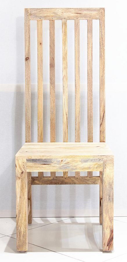 Szerokość 45cm / Głębokość 45cm / Wysokość 115cm / waga 8 kg Krzesło drewniane z pionowymi poprzeczkami na oparciu Cechy mebla: * siedzisko o wymiarach 45x41,5 * siedzisko na wysokości 45 cm * mebel w całości wykonany z litego drewna * pionowo żebrowane oparcie Eleganckie, proste w formie krzesło z wysokim efektownym oparciem wykonane z litej grubej deski drewna mangowca. Krzesło posiada doskonale wyprofilowaną część lędźwiową oparcia dla maksymalnego komfortu siedzenia. Idealne do jadalni czy salonu. Efektownie wygląda przy dużym masywnym drewnianym stole. Materiał: 100% drewno mango Kolor: naturalny Wykończenie: mat, lakier wodny Co wyróżnia nasze meble na tle konkurencji: - grubość drewna około 2-3 cm - konstrukcja z litego drewna - całość mebla wykonana jest w 100 % z drewna (korpus, plecy, półki, dna szuflad) - nie stosujemy wyrobów drewnopodobnych (płyt wiórowych, sklejki, płyt MDF i forniru) Są to elementy, na które rzadko zwraca się uwagę podczas zakupu mebli i których nie widać na zdjęciach, ale mają one jednak ogromny wpływ na trwałość i wytrzymałość mebli podczas ich użytkowania. Informacja dodatkowa: Drewno jest produktem w 100% pochodzenia naturalnego, w którym mogą występować delikatne przebarwienia, sęki lub pęknięcia. Wszystkie wymienione elementy są profesjonalnie wypełnione odpowiednią masą szpachlową, która w sposób estetyczny maskuje je i dodatkowo zabezpiecza mebel. Takie zjawiska są naturalną cechą drewna i jako takie nie podlegają reklamacjom. więcej informacji tutaj -->