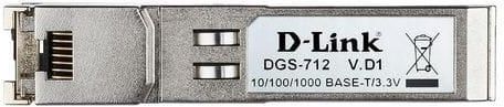 DLINK DGS-712 D-Link SFP 10 100 1000 BASE-T Copper Cechy produktu: Rodzaj urządzenia: Moduł nadajnik/odbiornik SFP (mnini GBIC) - RJ-45 Typ obudowy: Moduł podłączany Rodzaj okablowania: 10Base-T, 100Base-TX, 1000Base-T Protokół komunkacyjny danych: 10Mb LAN, 100Mb LAN, GigE Zaprojektowany dla: DES 3028, 3052, 3526, 3550; DGS 1216, 1248, 3100-24, 3100-48, 3200-10, 3200-16; Web Smart DES-1228, DES-1252, DGS-1216, DGS-1224, DGS-1248; xStack DES-3526, DES-3528, DES-3552, DES-3828, DES-3852, DGS-3426, DGS-3427, DGS-3450, DGS-3612, DGS-3627, DGS-3650