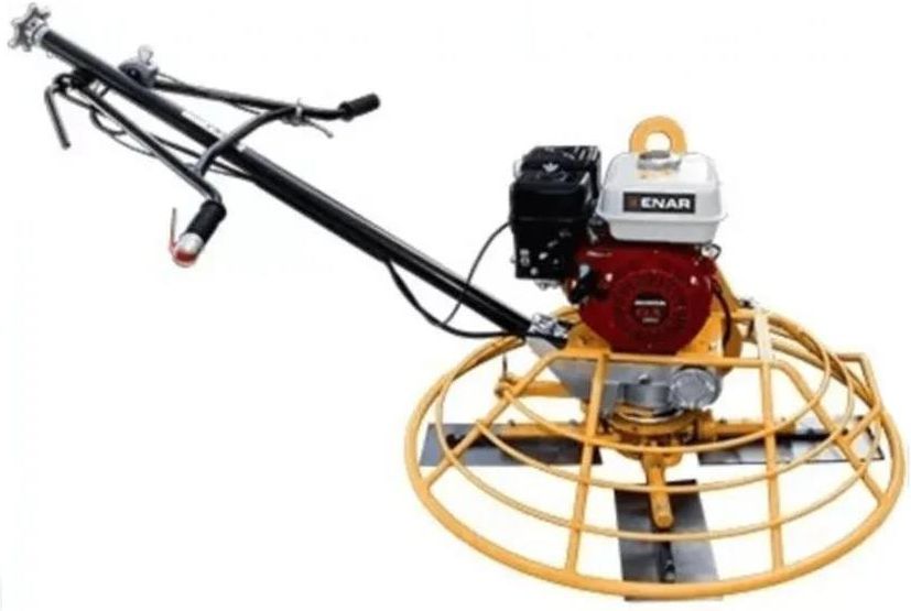 ENAR TIFON 1203 – spalinowa zacieraczka do betonu z silnikiem Honda GX 390 Producent: ENAR (Hiszpania) ENAR TIFON 1203 to zaawansowana, spalinowa zacieraczka do betonu, która łączy moc, precyzję i solidność wykonania. Wyposażona w ceniony silnik Honda GX 390 o mocy 11,7 KM, zapewnia sprawne i niezawodne wygładzanie powierzchni betonowych, nawet w najtrudniejszych warunkach. Kosz roboczy o średnicy 120 cm umożliwia szybkie i równomierne działanie na dużych powierzchniach. Dzięki przemyślanej konstrukcji — z możliwością pracy tuż przy ścianie, obrotową osłoną, regulowanymi łopatkami oraz systemem bezpieczeństwa operatora — model TIFON 1203 zapewnia doskonałe efekty i komfort pracy. Solidne materiały i precyzyjne wykonanie gwarantują długą żywotność i wytrzymałość maszyny. W zestawie znajdują się łopatki oraz talerz, co pozwala na rozpoczęcie pracy od razu po uruchomieniu. ENAR TIFON 1203 to doskonały wybór dla firm budowlanych i ekip remontowych, które potrzebują trwałego, wydajnego i precyzyjnego sprzętu do obróbki betonu. Cechy: Silnik Honda GX 390 (11,7 KM) – mocna i niezawodna jednostka spalinowa. Średnica zacierania 120 cm – umożliwia szybkie i efektywne wygładzenie dużych betonowych powierzchni. Możliwość pracy bezpośrednio przy ścianie – zoptymalizowana konstrukcja zwiększająca precyzję wykończenia. W zestawie komplet łopatek + talerz – gotowa do użycia od razu po zakupie. Obrotowa osłona i ręczna regulacja kąta łopatek – lepsza kontrola i dostosowanie do warunków pracy. System bezpieczeństwa operatora i punkt podnoszenia – komfortowa i bezpieczna obsługa. Solidne wykonanie i trwałe materiały – zaprojektowana z myślą o długotrwałym użytkowaniu w trudnych warunkach. Zastosowanie: Idealna do wygładzania dużych i średnich powierzchni betonowych — takich jak magazyny, hale, parkingi czy budowy przemysłowe. Sprawdza się szczególnie tam, gdzie liczy się efektywność, solidność i precyzja przy wykańczaniu krawędzi. Dane techniczne: Ciężar: 110 kg Średnica: 1200 cm Średnica zacierania: 1200 mm Moc: 8,6 kW / 11,7 KM Obroty: 135 obr/min Liczba łopatek: 4 Producent silnika: Honda GX 390 Typ silnika: Benzyna