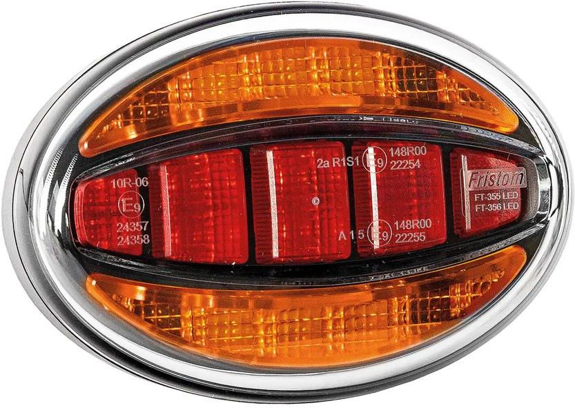 Lampa tylna FT-355 LED marki FRISTOM, do montażu po lewej i prawej stronie. Oferuje trzy funkcje: światło pozycyjne, stop oraz kierunkowskaz. Ma szerokie zastosowanie w różnego rodzaju pojazdach rolniczych, takich jak ciągniki, maszyny, kombajny, koparki.