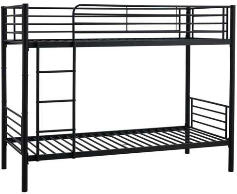 Łóżko Piętrowe Opcja Dwóch Łóżek Bunky 90 Czarne Halmar ✅ Łóżko Bunky to bardzo uniwersalny mebel, który zachwyci Cię swoją funkcjonalnością. Model wykonany z czarnej stali malowanej proszkowo świetnie sprawdzi się w nowoczesnym, minimalistycznym stylu. Największym atutem mebla jest z pewnością możliwość używania go w dwóch konfiguracjach. Model możesz wykorzystać jako łóżko piętrowe lub rozdzielić i otrzymać dwie niezależne od siebie powierzchnie do spania. Łóżko wyposażone jest w stelaże z listew giętych, jednakże nie zawiera ono materacy. Te mogą Państwo dokupić w naszym sklepie. ✅Wymiary: Szerokość: 99 cm Długość: 215 cm Wysokość całkowita: 165 cm Powierzchnie do spania: 90/200 cm ✅ Cechy produktu: Materiał: stal malowana proszkowo. Kolor: czarny, Łóżko sprzedawane z dwoma stelażami, Opcja dwóch łóżek pojedynczych lub łóżka piętrowego. ✅ "Stelaż" - dodatkowy atut Łóżko wyposażone jest w stelaże z drewnianych listew giętych, osadzonych w elastycznych uchwytach. Są one przystosowane do każdego typu materacy. ✅ Konstrukcja ze stali malowanej proszkowo: Metalowa konstrukcja gwarantuje meblowi stabilność i wytrzymałość. Metoda malowania proszkowego gwarantuje dużo lepszy efekt wizualny niż przy okazji tradycyjnego lakierowania. Powłoki malowane tym sposobem wykazują wysoką trwałość na zarysowania i otarcia.