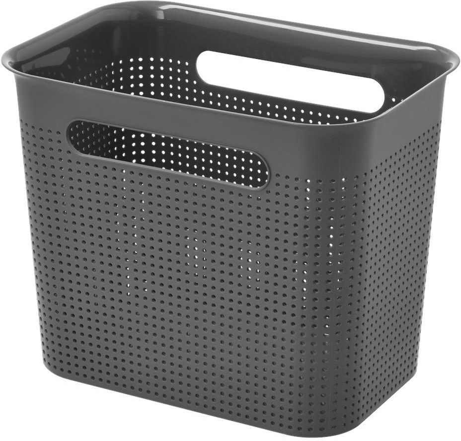 ✅Opis: Dekoracyjny koszyk do przechowywania z uchwytami.Ład i porządek w garderobie, szafce łazienkowej, przedpokoju czy pokoju dziecięcym. Szary koszyk do przechowywania marki Hard Head jest tak uroczy, że trzeba go pokazać! Dokup do niego pokrywkę lub więcej pojemników z tej samej serii, żeby stworzyć dokładnie taki system przechowywania, jakiego potrzebujesz.W 100% z materiału pochodzącego z recyklinguDobry wybór! Koszyk został wykonany w 100% z tworzywa pochodzącego z recyklingu.Uchwyty – łatwe przenoszenieDzięki uchwytom koszyk można łatwo zdejmować z półki i przenosić.Dokup pokrywkę i więcej pojemnikówPojemniki są dostępne w różnych rozmiarach – mieszaj do woli! Jeśli chcesz układać pojemniki jeden na drugim lub uniknąć kurzu, do kupienia są dostępne pokrywki. ✅Dane techniczne: Długość: 26,2 cmSzerokość: 18 cmWzrost: 21,1 cmWymiary: Dł. 26,2 x szer. 18 x wys. 21,1 cmPojemność: 7 l