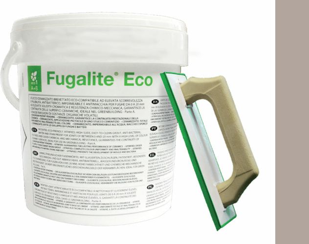 Spoina ceramizowana i certyfikowana, ekokompatybilna o podwyższonej obrabialności i zmywalności, bakteriostatyczna i grzybostatyczna, nieprzepuszczalna i plamoodporna do fug od 0 do 20 mm o podwyższonej odporności chemicznomechanicznej, gwarantuje ciągłość powierzchni ceramicznych, idealna w GreenBuilding. O najniższej emisji lotnych związków organicznych. Fugalite® Eco jest płynnym materiałem ceramicznym do jednolitego spoinowania wszystkich wyłożeń ceramicznych i mozaiki szklanej. Dostępna w 4 kolekcjach kolorów, w sumie 30 barw, które tworzą przestrzeń dla kreatywności i najoryginalniejszych idei, tworząc niewątpliwe piękno pomieszczeń. Kolekcja Crystal Z doświadczenia i tradycji Swarowski Company (Swarko) narodziły się mikroperełki szkła z recyklingu, stosowane w kolekcji Crystal. Fugalite® Eco Crystal w kolorach bianco extrafine i neutro dopełnia kolekcje kolorów dając wyłożeniom wartość i luksusowy charakter. Jak to działa Fugalite® Eco jest pierwszą na świecie spoiną ceramizowaną, która po raz pierwszy łączy innowacyjne i przyjazne dla środowiska surowce z nowymi procesami przerobu naturalnych minerałów. Proces ceramizacji przewiduje: • nieprzepuszczalne szkliwienie powierzchni w wysokiej temperaturze • nadanie koloru za pomocą specjalnych pigmentów • hydrofobową obróbkę szkliwionej powierzchni Zalety • Fugalite® Eco jest pierwszą spoiną ceramizowaną o niskim wpływie na środowisko, gwarantującą ciągłość parametrów wyłożenia ceramicznego i mozaiki szklanej. • Fugalite® Eco rozwiązuje definitywnie problemy estetyczne i funkcjonalne spoin, gwarantując piękny i jednorodny kolor, niezmienny z upływem czasu. • Fugalite® Eco zmywa się jak płytki, jest całkowicie nienasiąkliwa i plamoodporna, nie zmienia koloru po zwilżeniu. • Fugalite® Eco posiada podwyższoną odporność na agresywne środki chemiczne, czyniąc ją idealną na wszystkich powierzchniach, zarówno w domu jak i w pomieszczeniach bardzo obciążanych ruchem. • Fugalite® Eco umożliwia łatwe nanoszenie i może być stosowana na wszystkie materiały i w każdej sytuacji Opakowanie 3 kg