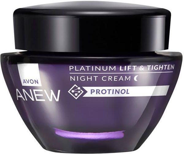 Ultra nawilżający krem modelujący na noc Platinum Anew od Avon do cery dojrzałej 55+ wzbogacony formułą Paxillium – maksymalny lifting nawet wtedy, kiedy śpiszWygładzający zmarszczki krem do konturowania twarzy, do cery dojrzałej 55+Działanie: modeluje kontur twarzy i głęboko odżywia skórę, kiedy Ty śpiszEfekt: promienna cera bez śladu zmarszczekIntensywnie nawilżenie i kompleksowa regeneracja w trakcie snu? Czemu nie? Teraz możesz naprawdę zadbać o odmłodzenie twarzy bez żadnego wysiłku! Dzięki technologii Paxillium nasz krem Platinum Anew na noc mocno odżywi i poprawi kontur twarzy, odbudowując naturalne włókna kolagenowe, które są niezbędne, by utrzymać jędrność Twojej skóry. Nasz krem modelujący szybko się wchłania, a efekty działania zobaczysz już po kilku dniach o poranku, przeglądając się z uśmiechem w lustrze.Jak stosować?Niewielką ilość kremu delikatnie wklep w uprzednio oczyszczoną twarz i szyję, następnie rozsmaruj aż do pełnego wchłonięcia kosmetyku. Stosuj wieczorem, przed snem.Inspiracja:Potrzebujesz naprawdę mocnego odżywienia i liftingu 24h/7? Wypróbuj modelujący krem Platinum Anew na dzień i ciesz się podwójną dawką nawilżenia!
