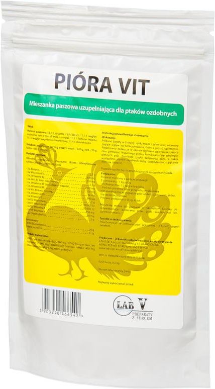 Opinie Lab-V Pióra Vit - Mieszanka Paszowa Uzupełniająca Dla Drobiu Na Poprawę Wypierzenia 0,5Kg Puławy