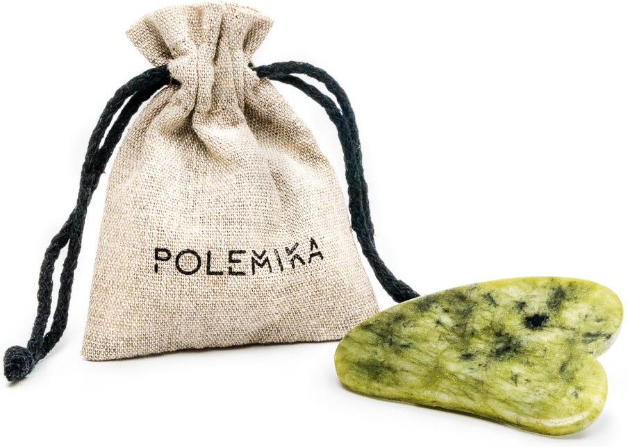 Płytki wykonane są z jadeitu, naturalnego kamienia, dlatego każda płytka różni się między sobą. Płytki są sprzedawane w woreczku z bawełny z recyklingu, z logo Polemika. Głównym atutem używania płytki gua sha jest działanie przeciwzmarszczkowe i ujędrniające. Masaż płytką wpływa na poprawę owalu twarzy, jędrności i elastyczności skóry. Działa liftingująco, zwiększa ukrwienie, korzystnie wpływa na cyrkulację krwi i zmniejsza obrzęki. Przywraca skórze blask, przynosząc niesamowity relaks. Cudowne ukojenie przynosi przyłożenie schłodzonej płytki gua sha w okolice oczu. Płytka gua sha to płytka jadeitowa. To kamień naturalny, który nie jest w żaden sposób traktowany w celu ulepszenia jego właściwości i wyglądu, a w szczególności podbarwiany, podgrzewany, stabilizowany czy nasycany substancjami sztucznymi. Diagnoza gemmologiczna płytki została wykonana przez Piotra Wróblewskiego, eksperta w zakresie gemmologii stosowanej. Sposób użycia i masaż Na dokładnie oczyszczoną skórę twarzy i szyi zaaplikuj tonik lub hydrolat. Następnie użyj swojego ulubionego preparatu olejowego, by nadać płytce poślizg. My rekomendujemy użycie Hydrofilnego masła oczyszczającego, ponieważ razem z jadeitową płytką do twarzy gua sha stanowią duet doskonały! Następnie rozpoczynamy masaż. Pamiętajmy, żeby każdy ruch wykonać 10 razy oraz aby masaż płytką jadeitową wykonywać w kierunku zewnętrznym i ku górze.