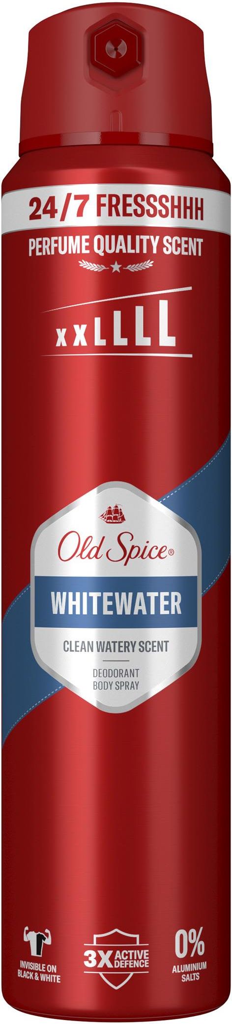 Old Spice Whitewater Dezodorant w sprayu dla mężczyzn 250ml Ciesz się świeżością przez 24 godziny i 7 dni w tygodniu* oraz pachnącą pewnością siebie dzięki dezodorantowi Old Spice Whitewater w sprayu. WYPRÓBUJ ZAPACH WHITEWATER O JAKOŚCI PERFUM Zapach z nutami świeżej wody, drzewa sandałowego, cytrusów i bursztynu sprawi, że Twój urok będzie tak nieodparty jak syreni śpiew FORMUŁA Z POTRÓJNĄ OCHRONĄ Trwały zapach Ochrona przed nieprzyjemnym zapachem Zwalczanie nieprzyjemnego zapachu Cały czas będziesz pachnieć legendarnie (przy codziennym stosowaniu). WYPRÓBUJ NIEWIDOCZNĄ ŚWIEŻOŚĆ, BEZ ALUMINIUM Sztyft Old Spice zapewni Ci świeżość przez cały dzień, nie pozostawiając śladów ani na białym, ani na czarnym ubraniu UWOLNIJ ŚWIEŻOŚĆ CIAŁA I PACH Stosuj rano, aby zapewnić sobie długotrwałą świeżość. Nałóż ponownie w razie potrzeby, aby dodać sobie świeżości w ciągu dnia WSZYSTKO ALBO NIC! Wypróbuj rozmiar XXLLLL, by zyskać więcej dni długotrwałej świeżości o jakości perfum * przy codziennym stosowaniu