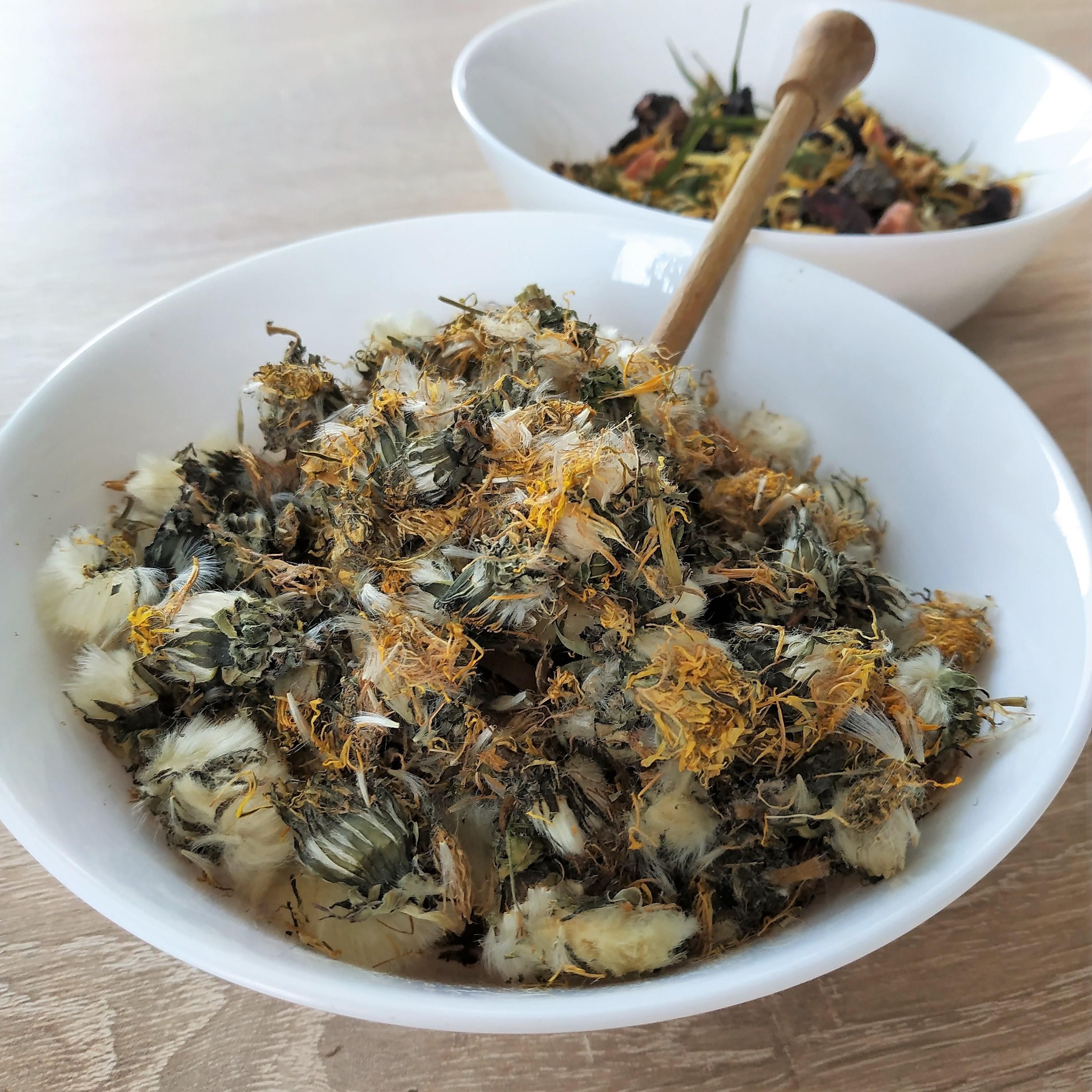 mniszek kwiat 100g Po terminie Kwiaty mniszka lekarskiego (Taraxacum officinale) są znane ze swoich licznych właściwości zdrowotnych i szerokiego zastosowania w medycynie naturalnej. Oto niektóre z najważniejszych właściwości kwiatów mniszka: Antyoksydacyjne: Kwiaty mniszka są bogate w antyoksydanty, takie jak witamina C i beta-karoten, które pomagają w ochronie komórek przed uszkodzeniami oksydacyjnymi. Przeciwzapalne: Związki zawarte w kwiatach mniszka mają działanie przeciwzapalne, co może pomóc w łagodzeniu stanów zapalnych w organizmie. Detoksykujące: Kwiaty mniszka wspomagają detoksykację organizmu, szczególnie poprzez wspieranie funkcji wątroby i nerek. Wspomaganie trawienia: Mniszek lekarski może stymulować wydzielanie żółci, co wspomaga trawienie tłuszczów i poprawia funkcjonowanie układu trawiennego. Przeciwwirusowe i przeciwbakteryjne: Kwiaty mniszka mają właściwości przeciwwirusowe i przeciwbakteryjne, co może pomóc w zwalczaniu infekcji. Diuretyczne: Mniszek lekarski działa moczopędnie, co może pomóc w usuwaniu nadmiaru płynów z organizmu i wspomaganiu zdrowia nerek. Wzmacnianie układu odpornościowego: Dzięki zawartości witamin i minerałów, kwiaty mniszka mogą wspierać układ odpornościowy. Poprawa zdrowia skóry: Kwiaty mniszka mogą być stosowane zewnętrznie w formie toników czy maści, pomagając w leczeniu trądziku, wysypek i innych problemów skórnych. Regulacja poziomu cukru we krwi: Niektóre badania sugerują, że mniszek lekarski może pomóc w regulacji poziomu cukru we krwi, co jest korzystne dla osób z cukrzycą. Poprawa zdrowia serca: Kwiaty mniszka mogą wspomagać zdrowie serca, pomagając w obniżeniu poziomu cholesterolu i ciśnienia krwi. Wsparcie zdrowia oczu: Zawartość witaminy A i beta-karotenu w kwiatach mniszka może wspierać zdrowie oczu i zapobiegać problemom ze wzrokiem.