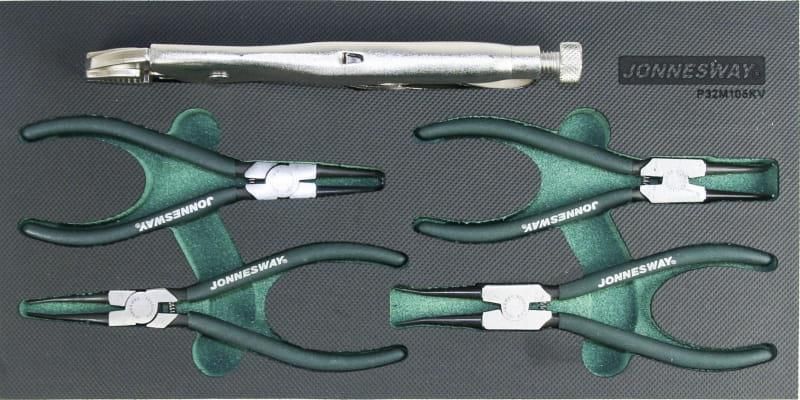 Opis produktu Zawartość zestawu: AG010002 | 1 szt. - szczypce do pierścieni Seegera 7" wewnętrzne proste AG010005 | 1 szt. - szczypce do pierścieni Seegera 7" wewnętrzne wygięte AG010008 | 1 szt. - szczypce do pierścieni Seegera 7" zewnętrzne proste AG010011 | 1 szt. - szczypce do pierścieni Seegera 7" zewnętrzne wygięte P32M10A | 1 szt. - szczypce zaciskowe "MORS" 10" Wymiary wkładki: 190 x 380 mm