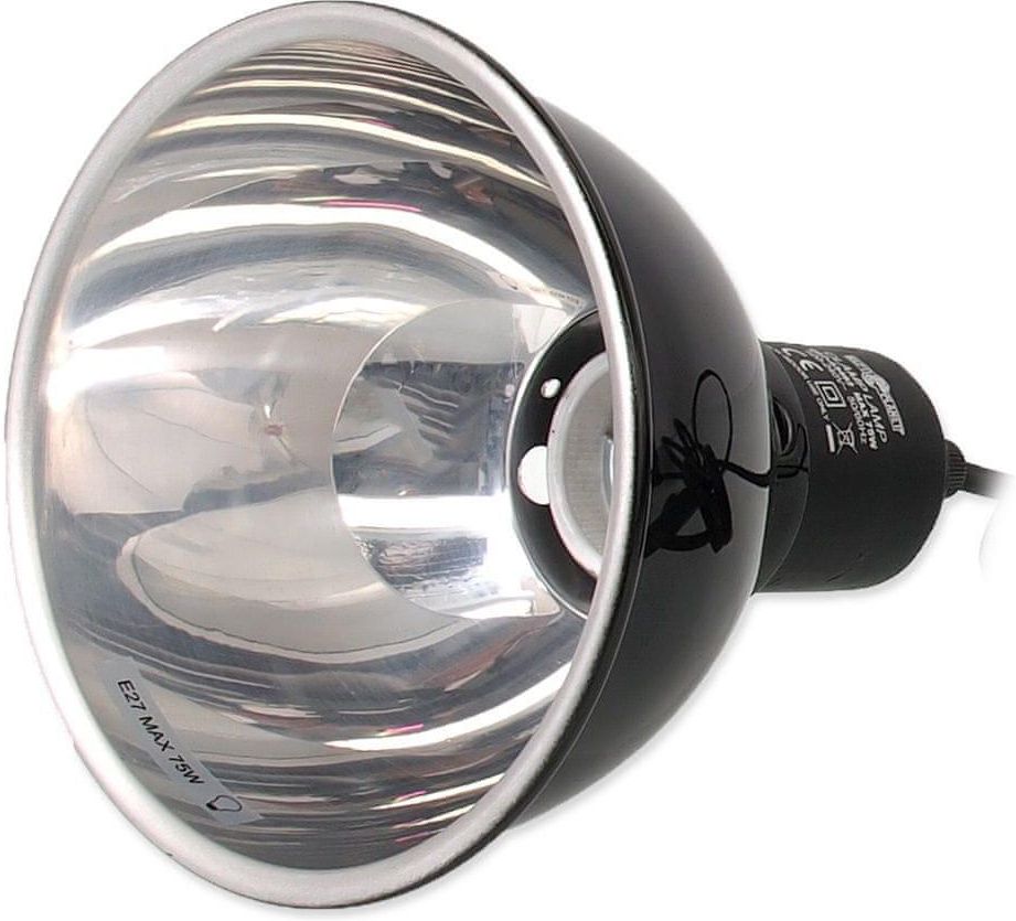 REPTI PLANET DOME LAMP Oprawa oświetleniowa Pojedyncza oprawa max 1 x 75W Gruby gwint E 27 Średnica klosza 14 cm Oprawa oświetleniowa. Oprawa oświetleniowa do terrariów ceramicznym gniazdem żarówki i odbłyśnikiem. Przeznaczona do oświetlenia punktowego o mocy do 75W. Aluminiowy odbłyśnik tworzy w terrarium punkty cieplne ze skoncentrowanym światłem. Kompaktowy rozmiar.Zwiększa moc UVB. Oprawa typu E27. Idealny do zastosowania w terrariach REPTI PLANET i nie tylko. Wypolerowany na wysoki połysk aluminiowy odbłyśnik zwiększa ilość światła, oraz UVB i UVA. Przeznaczona do zastosowania w średnich i dużych terrariach. Lampa umożliwia instalację bezpośrednio na górnej pokrywie terrarium lub możliwe jest użycie specjalnego uchwytu do mocowania lampy (nie wchodzi w skład zestawu). Do oprawy dołożony jest stalowy haczyk do powieszenia lampy. Niewidoczny na zdjęciu Zdjęcie poglądowe innej oprawy. Tak możemy zamontować oprawę Uchwyt na innej aukcji.