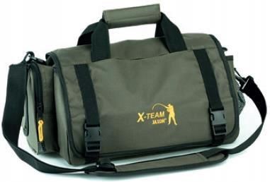 Wygodne, pojemne torby wędkarskie z dodatkowymi schowkami w bocznych kieszeniach. UJ-XAC02 Wymiary: 43/17/22 cm