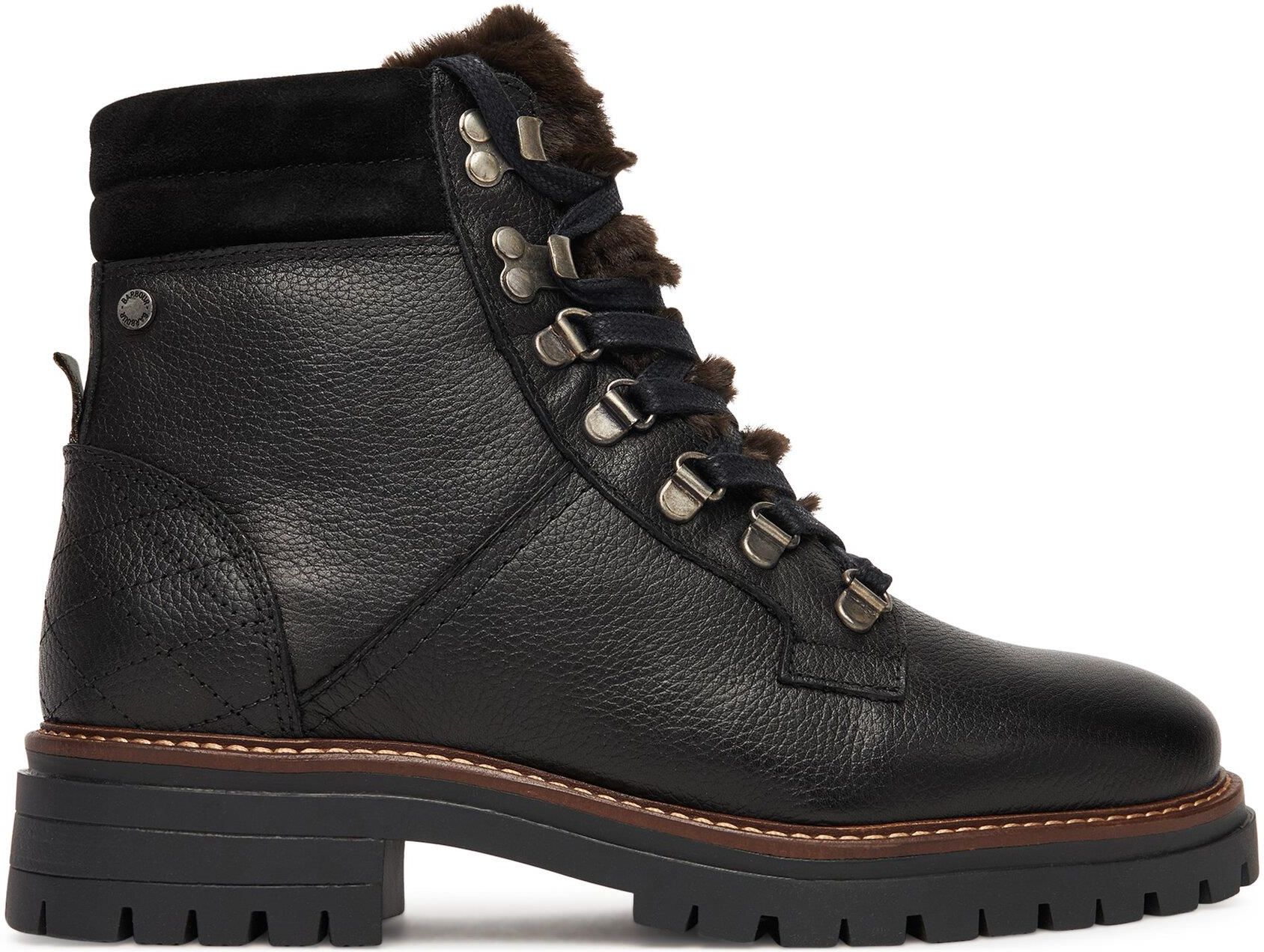 Szukasz obuwia, które idealnie łączy styl z funkcjonalnością? Damskie trapery marki Barbour to idealny wybór! Wykonane z wysokiej jakości skóry naturalnej licowej, zapewniają trwałość i elegancki wygląd, który łatwo dopasujesz do codziennych stylizacji. Wnętrze z miękką skórzaną wkładką gwarantuje komfort noszenia, nawet podczas długich spacerów. Dodatkowym atutem są stylowe sznurówki z materiału, które podkreślają ich unikalny charakter. Wybierz trapery Barbour i ciesz się wyjątkowym połączeniem jakości, wygody i ponadczasowego designu!