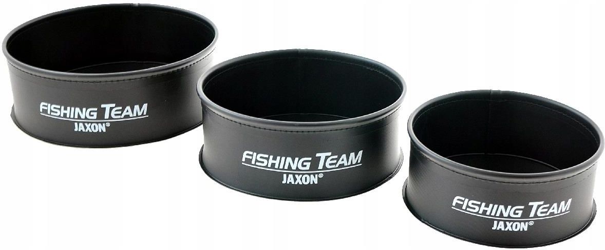 JAXON miska EVA zestaw RE-105 Pojemniki EVA Nowoczesne i bardzo praktyczne pojemniki, wykonane z trwałego i jednocześnie lekkiego materiału EVA. Ich specyfi ka polega na tym, że są bardzo elastyczne, nie przepuszczają wody i ograniczają bagaż wędkarza. Wszystkie produkty łatwo utrzymać w czystości dzięki zaokrąglonym krawędziom. Pojemniki EVA są niezbędnym elementem wyposażenia osób łowiących na feeder, metodę lub spławik. Zestaw misek EVA. Zestaw zawiera 3 miski: duża - średnica 24 cm, wysokość 9 cm, pojemność 3,8 l. średnia - średnica 21 cm, wysokość 8 cm, pojemność 3 l. mała - średnica 18 cm, wysokość 8 cm, pojemność 1,8 l.
